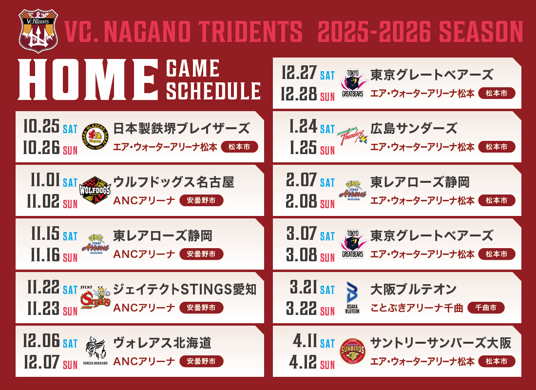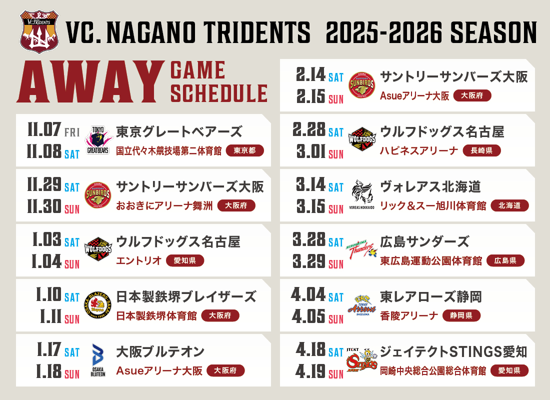 2025-26 大同生命 SV.LEAGUE 試合日程のお知らせ