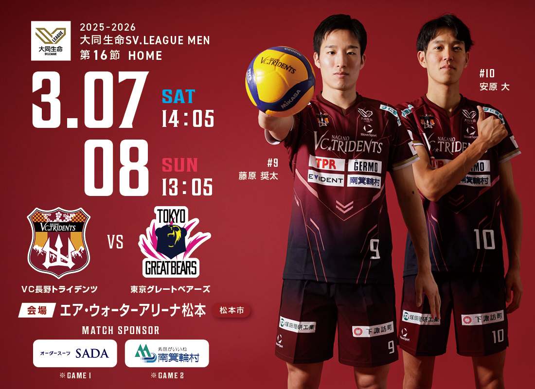 大同生命SV.LEAGUE 【第12節】非帯同選手についてのお知らせ
