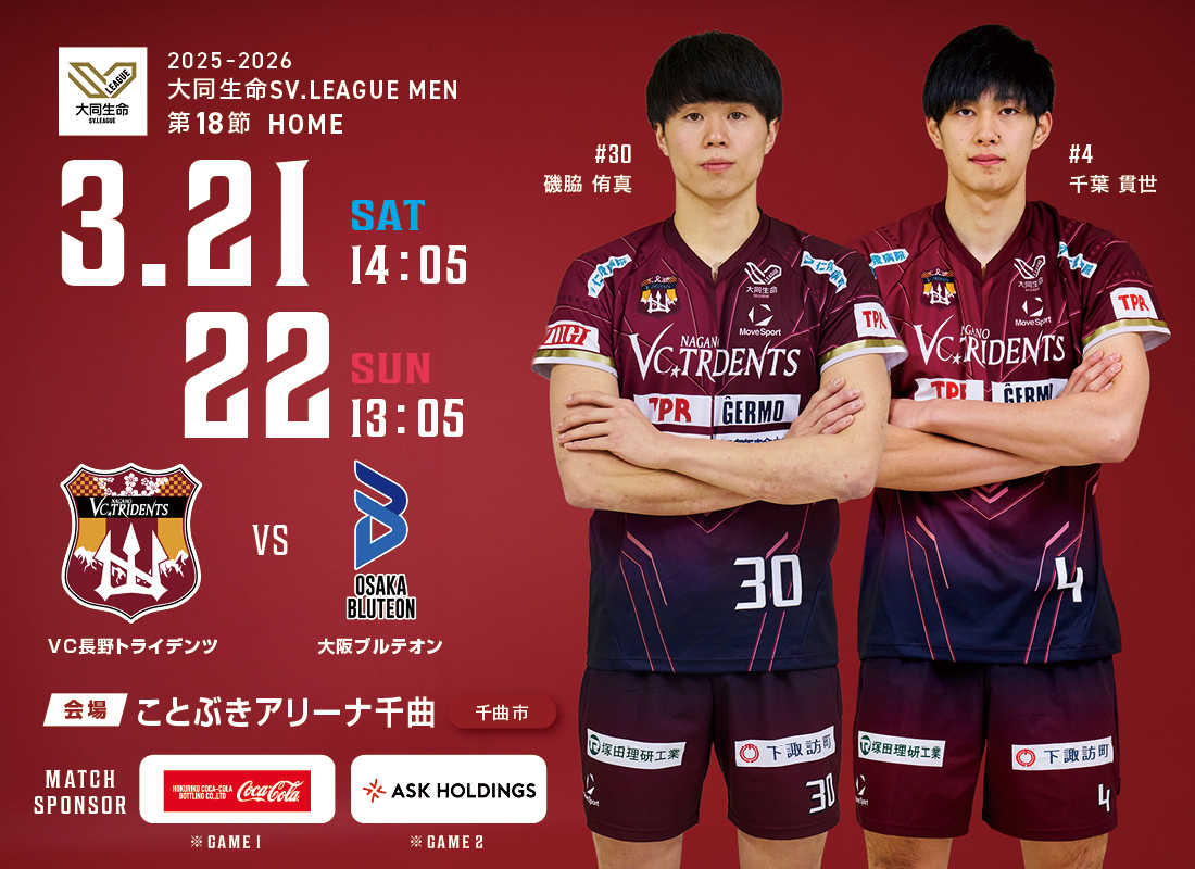 【第16節】春こそトライデンツ!VC長野公式LINE新規登録者限定、先着100名さまをご招待!