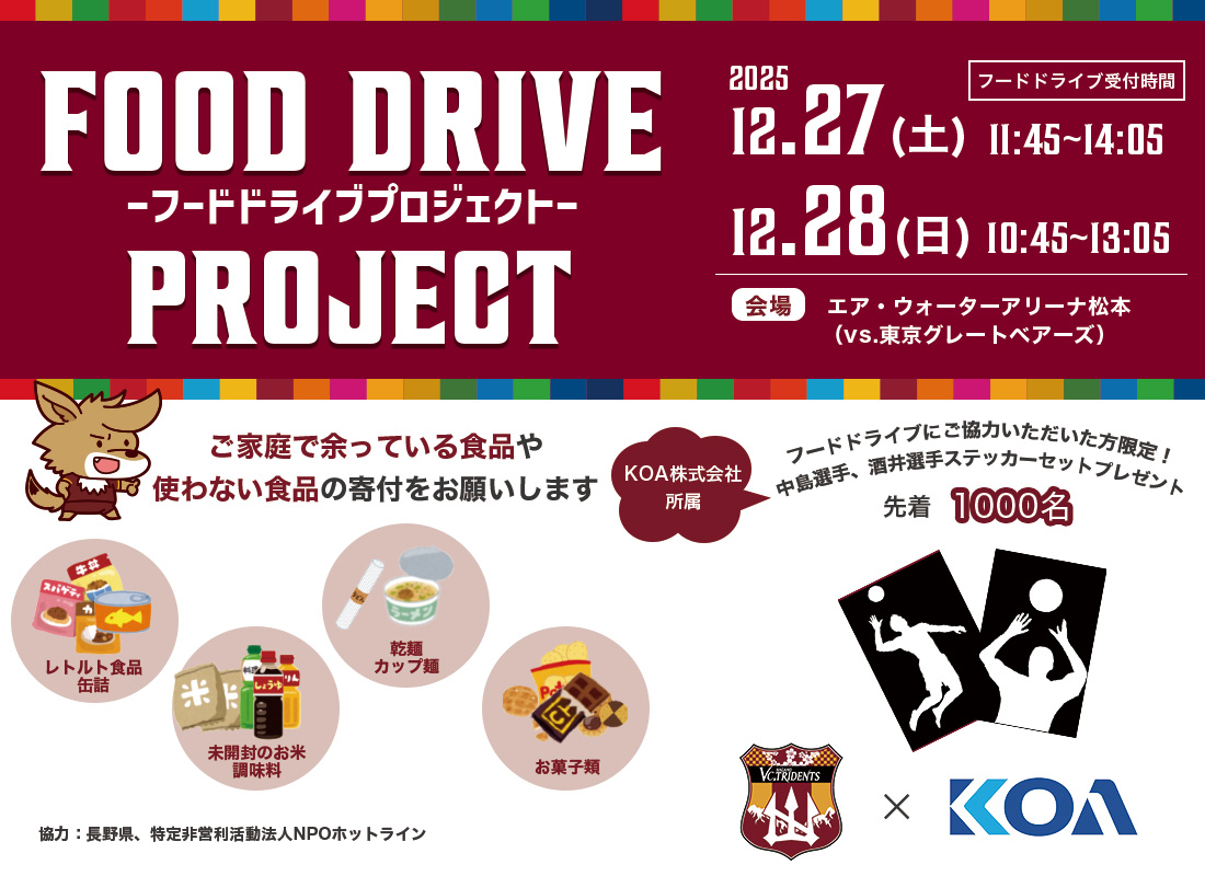 12/27-28 東京グレートベアーズ戦「フードドライブ」実施のお知らせ