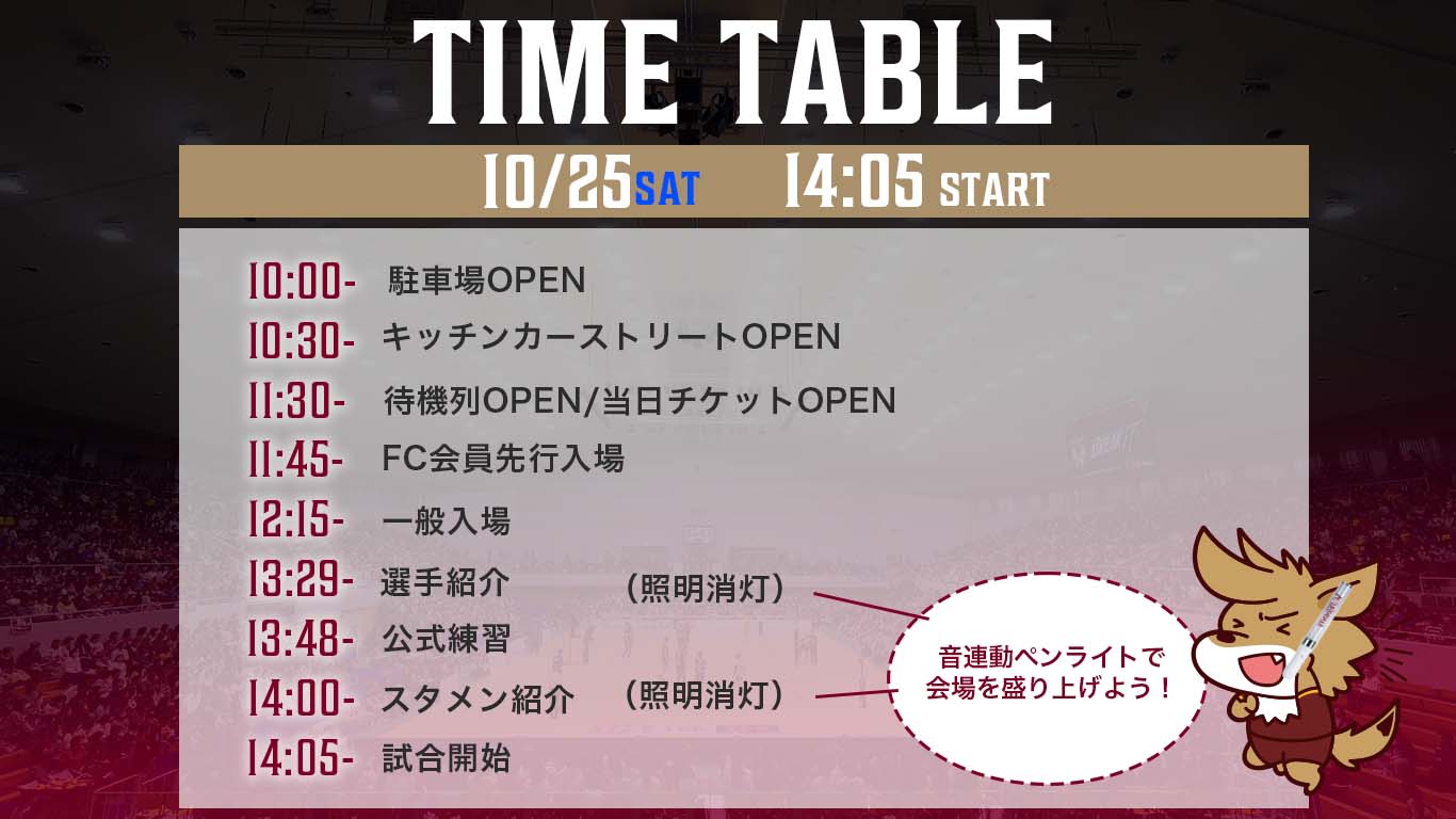 10月25日(土)試合開始14:05 先行入場11:45 一般入場12:15