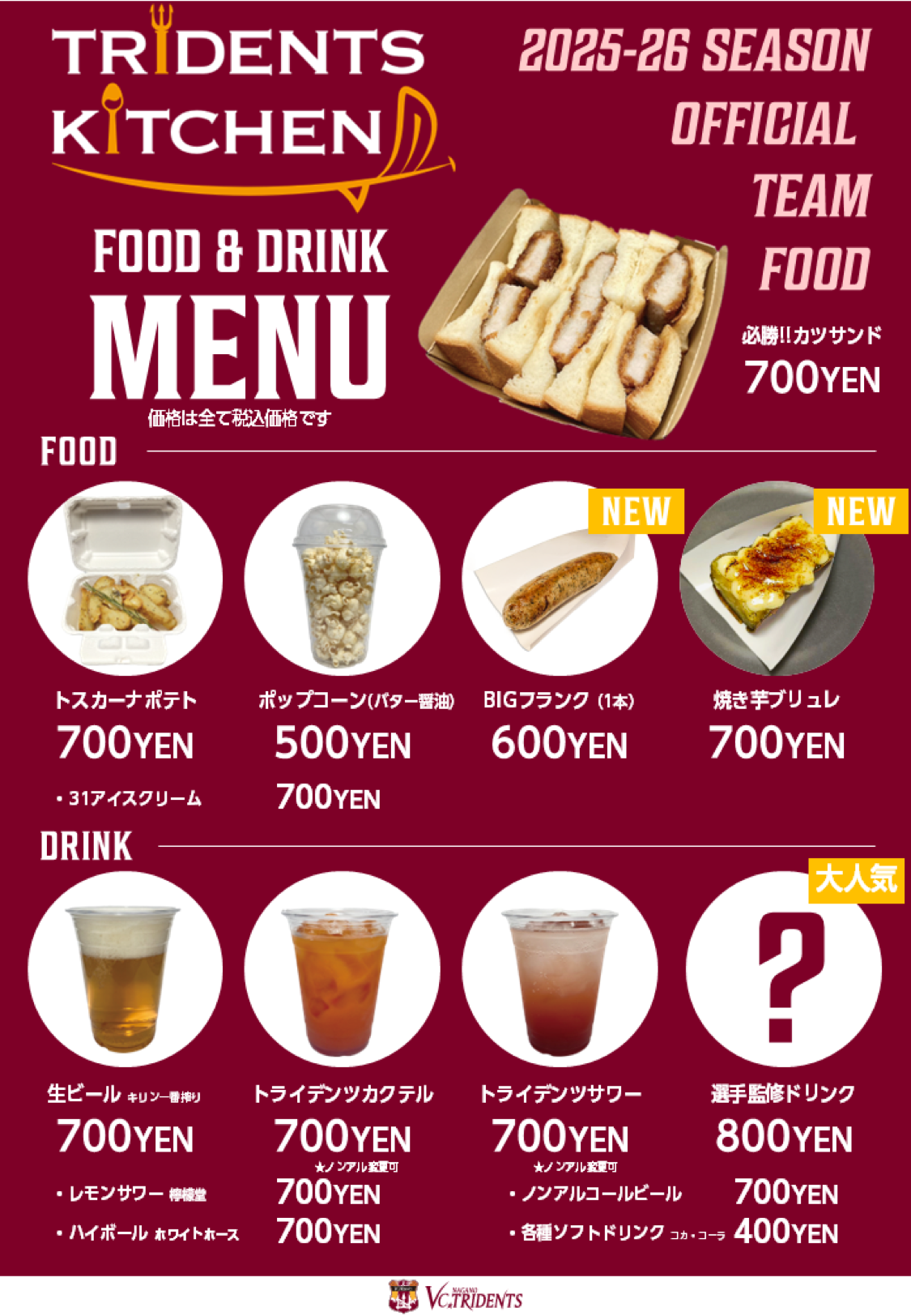 (選手監修オリジナルドリンク/BIGフランク/必勝カツサンド/トスカーナポテト/など)