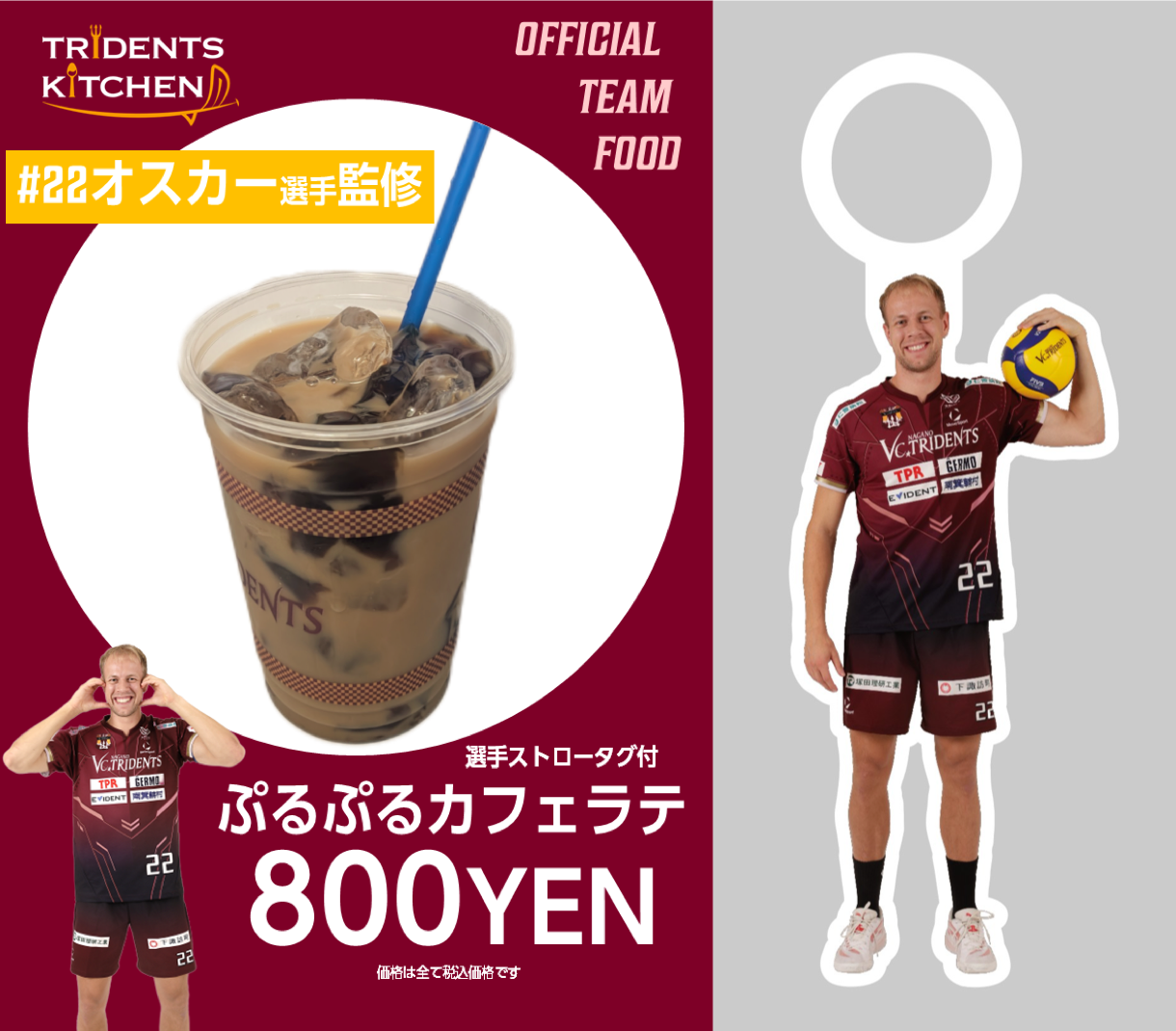 オスカー選手、難波選手のオリジナルドリンクで一緒に写真を撮って、飲んで、トライデンツを応援しよう!