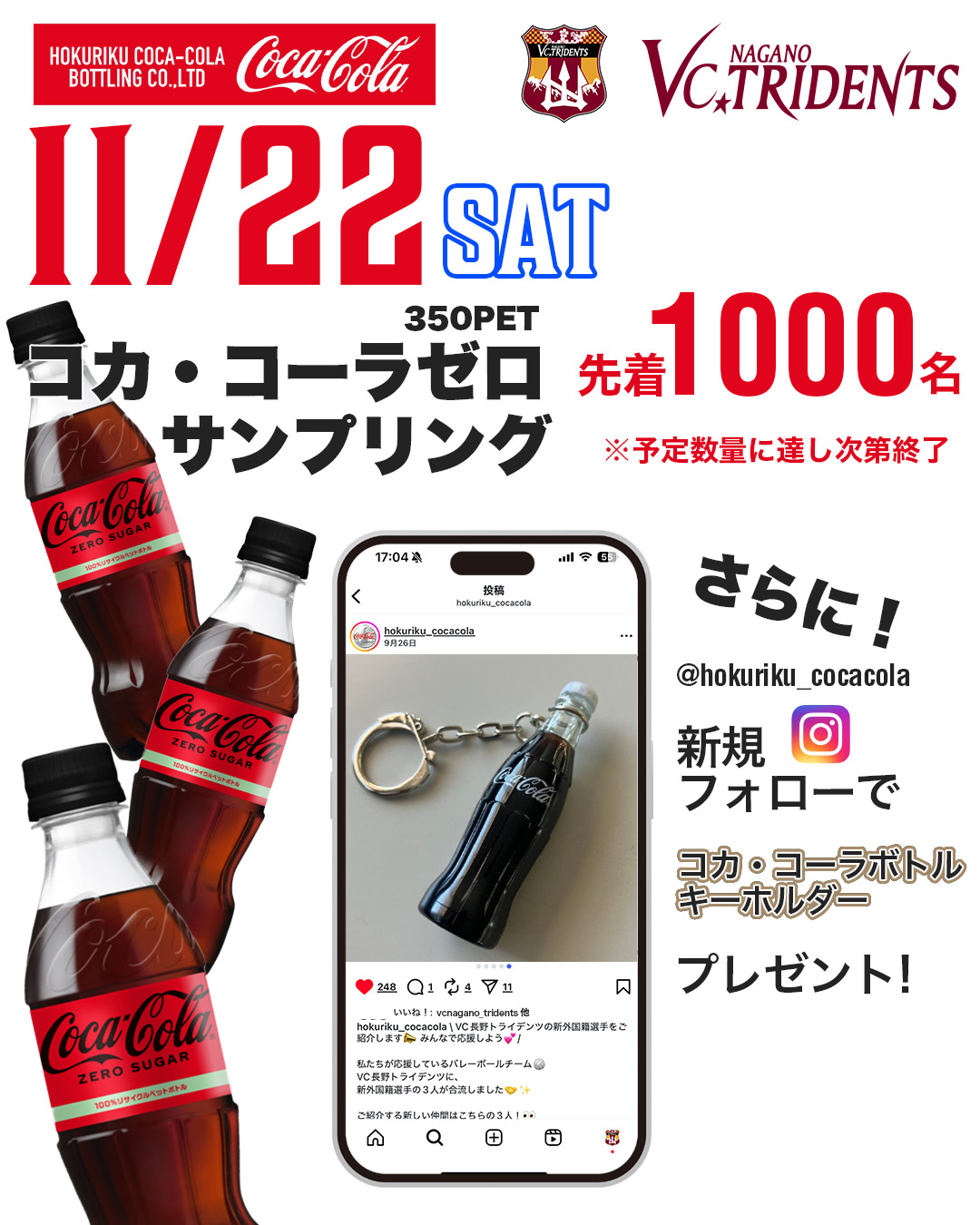【第5節】11/22(土) HG安曇野大会 コカ・コーラサンプリングイベント実施のお知らせ