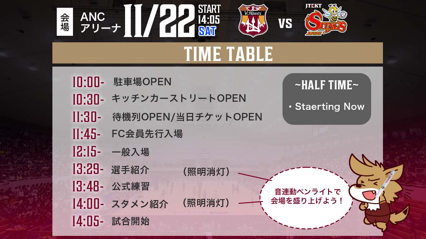 11月22日(土)試合開始14:05 先行入場11:45 一般入場12:15