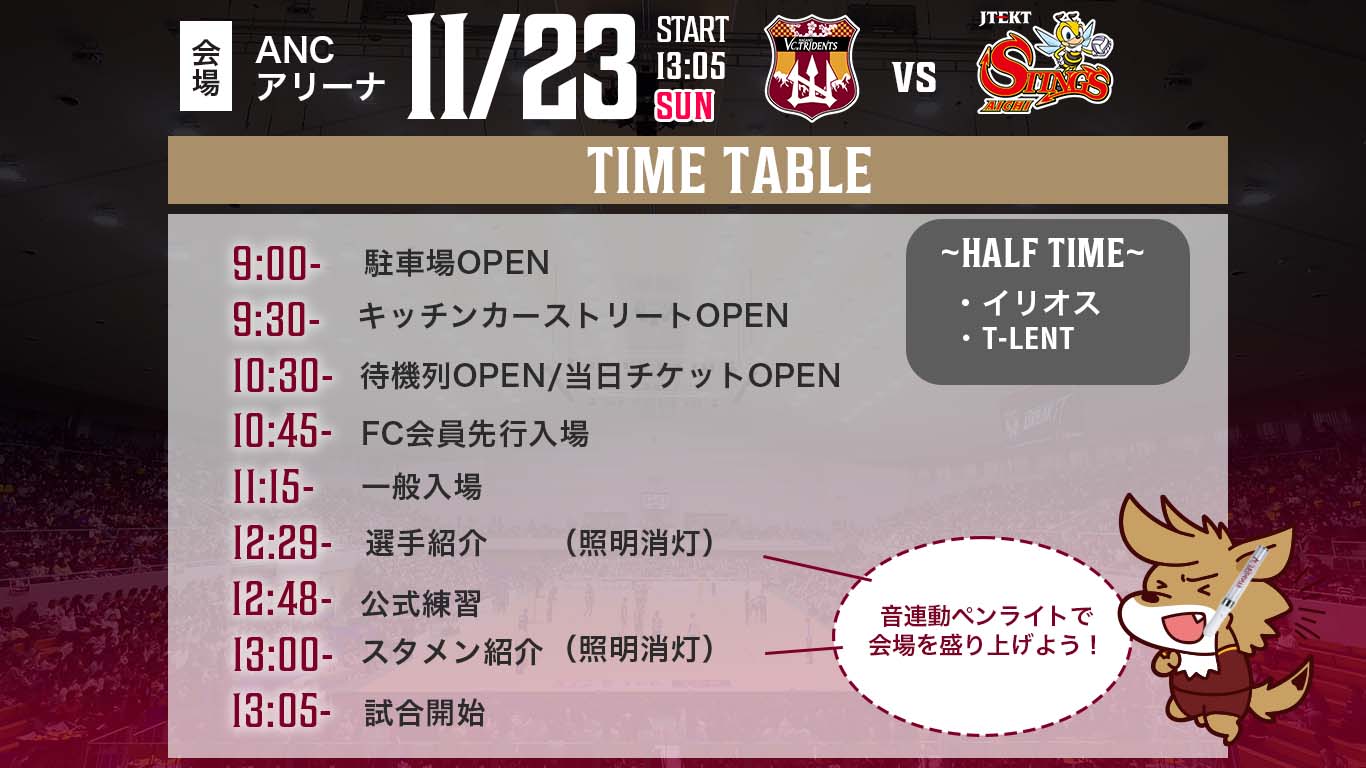 11月23日(日)試合開始13:05 先行入場10:45 一般入場11:15