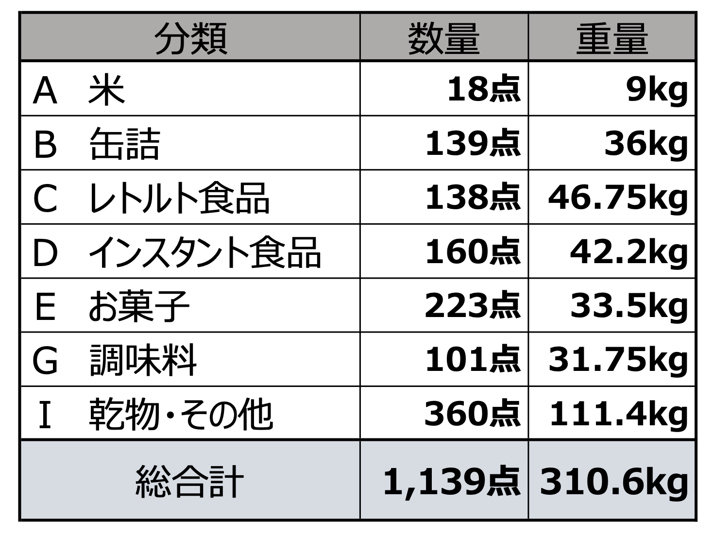 お米、缶詰やレトルト食品、インスタント食品、お菓子などたくさんの食品をいただき、長野県、